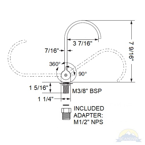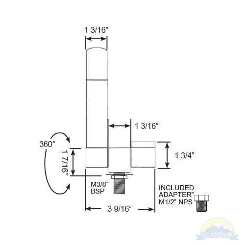 Water Connection: 3/8” BSP-M threaded shaft, 1/2” NPS-M adapter included
