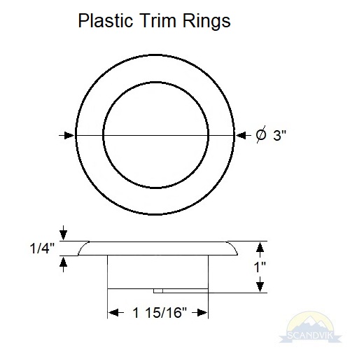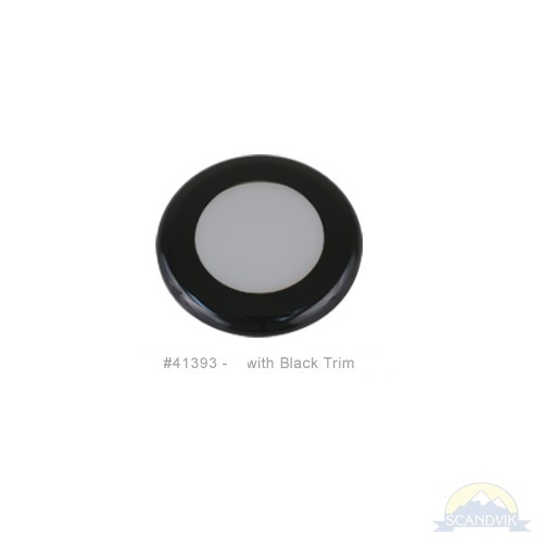 Scandvik’s A3 LED Down Light is offered as single or dual-color lighting and can be dimmed when paired with our Tortuga PWM dimmer (Part #41598P). The A3 series features a snap over bezel in Polished 316 stainless steel, White or Black polycarbonate. A3 mounts securely overhead using just two flathead screws (included). Single color lights are two wire (positive/negative) connection and work with a common switch (on-off). Dual-color lights are three wire connection (positive lead for each color and a common negative) and require a 3-way switch (on-off-on). A3’s are a good choice for general overhead lighting on smaller boats or as undercabinet lighting for any size vessel. Other applications include hard tops, arches, walkway overhangs, and shower stalls.