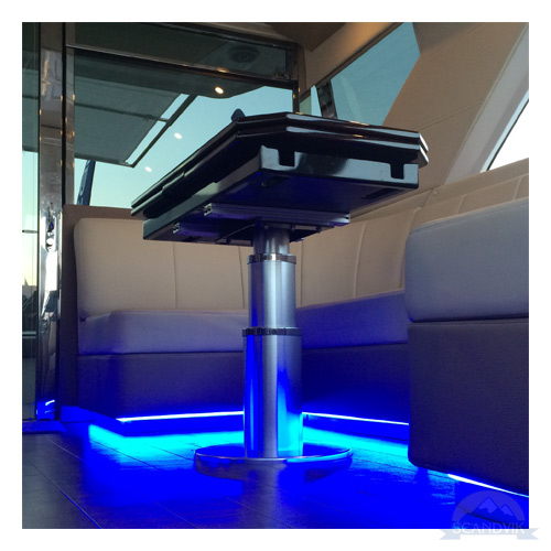 Electric table pedestals offer the height of luxury on any boat. These heavy-duty table pedestals are designed for extra stability on smaller boats in rough conditions or on larger boats with oversized tables. Beautifully finished aluminum alloy will protect against the elements for many years. Anyone can raise and lower tables with the push of a button. Perfect as a single pedestal or used as synchronized pairs with larger tables or sun pads. Both top plate and mounting plate measure 15-3/4" in diameter with large 6" diameter base tube. Rated at 220 lbs. capacity for each pedestal.